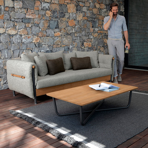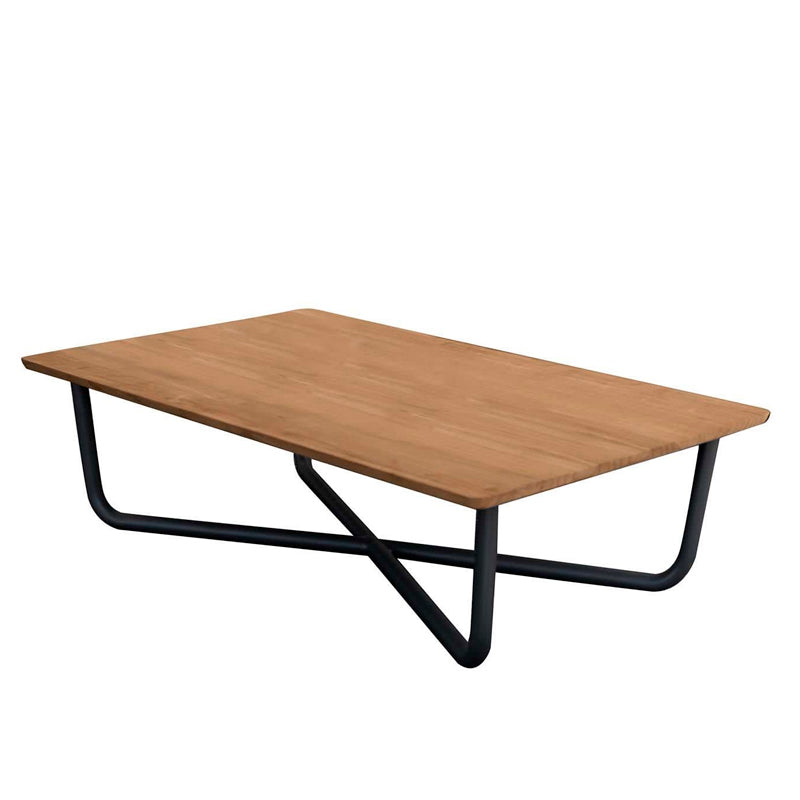 COFFEE TABLE CON ESTRUCTURA EN ALUMINIO PINTANDO GRAPHITE Y TOP EN MADERA TEKA. MEDIDAS: 100 X 100 X 30H