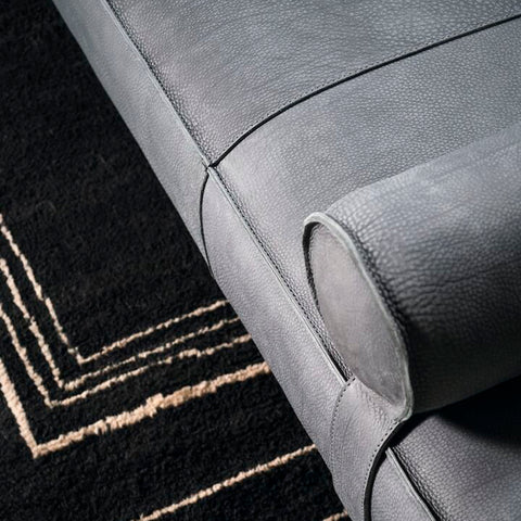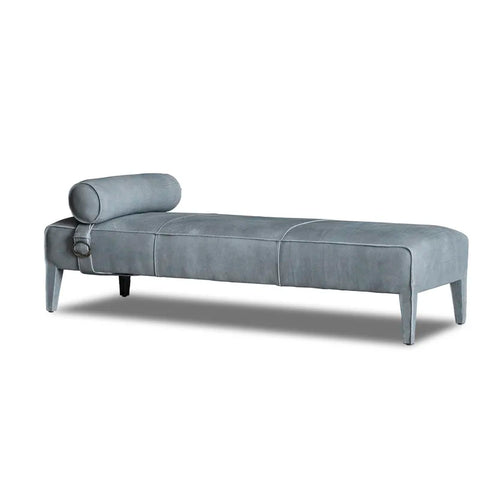 BANCA CON COJÍN ROLL CON ESTRUCTURA EN CONTRACHAPADO DE PINO Y ÁLAMO. RELLENO DE ESPUMA DE POLIURETANO REVESTIDO EN PIEL CLOISTER GREY. MEDIDAS: 180 X 65 X 43H