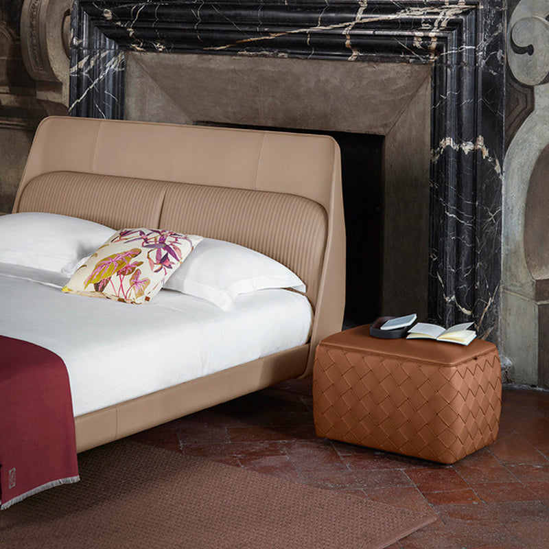 POUF CON ESTRUCTURA DE CONTRACHAPADO DE ABEDUL Y ACOLCHADO DE ESPUMA DE POLIURETANO, REVESTIDO EN PELLE FRAU SOUL COL. JOE. MEDIDAS: Ø46 X 46H.