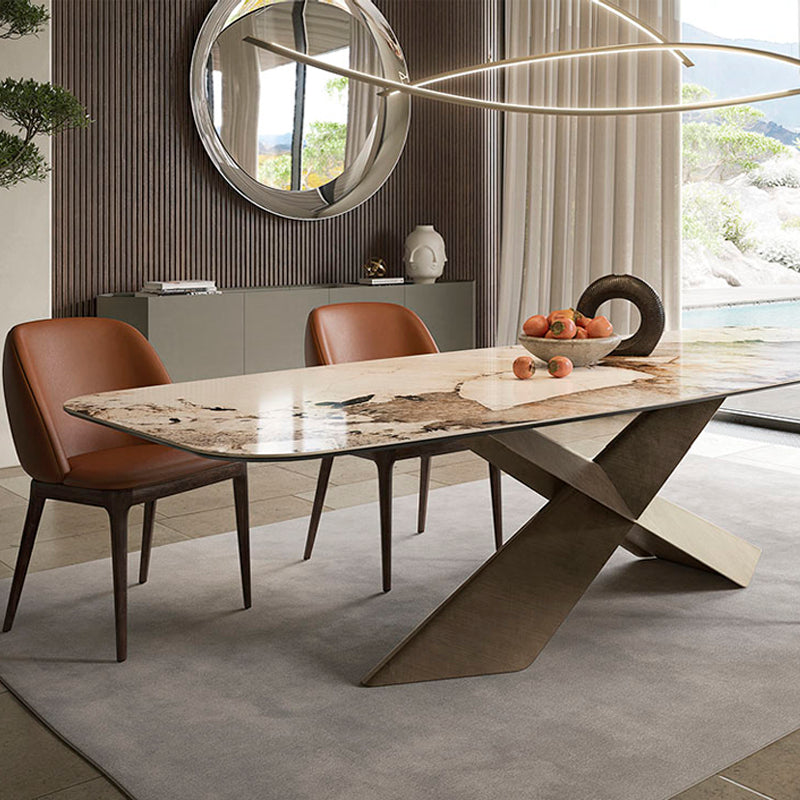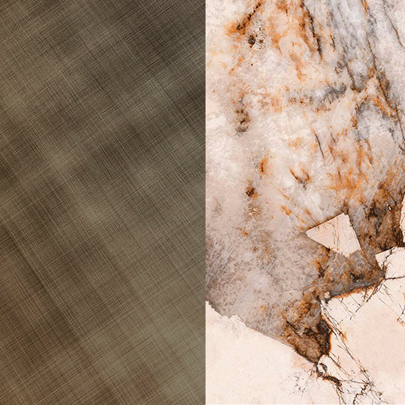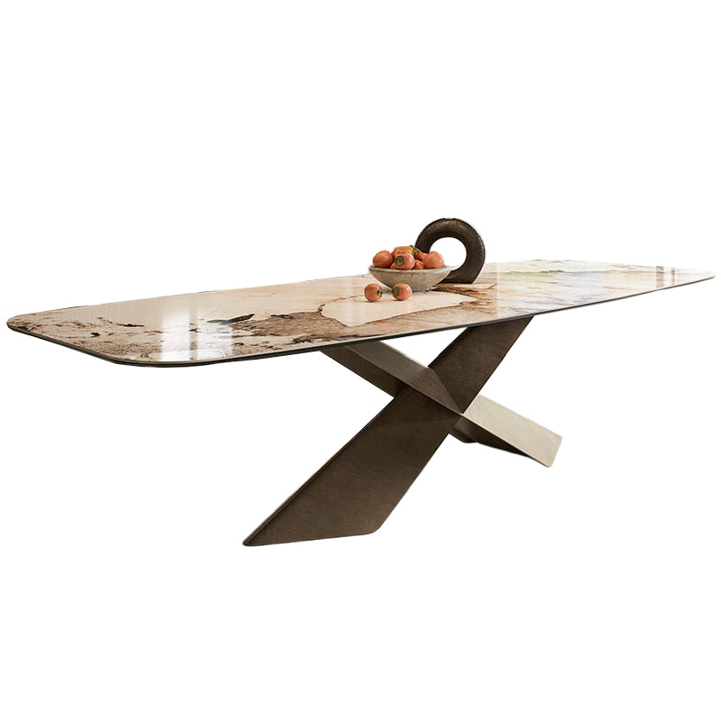 MESA CON ESTRUCTURA EN METAL BRUSHED BRONZE Y TOP EN CERÁMICA MARMI KM14 CORCOVADO. MEDIDAS:300 X 120 X 74H SAG