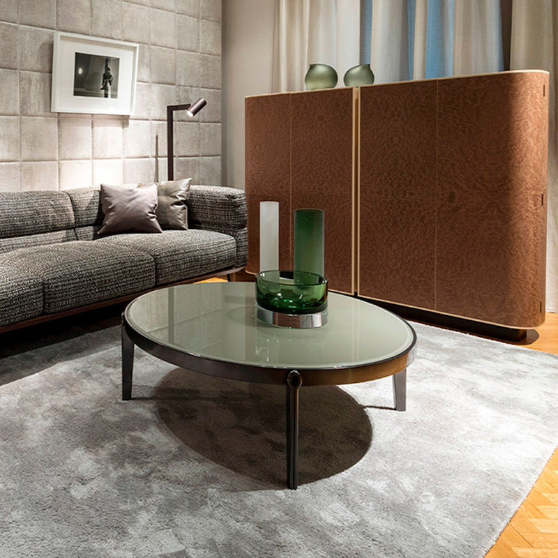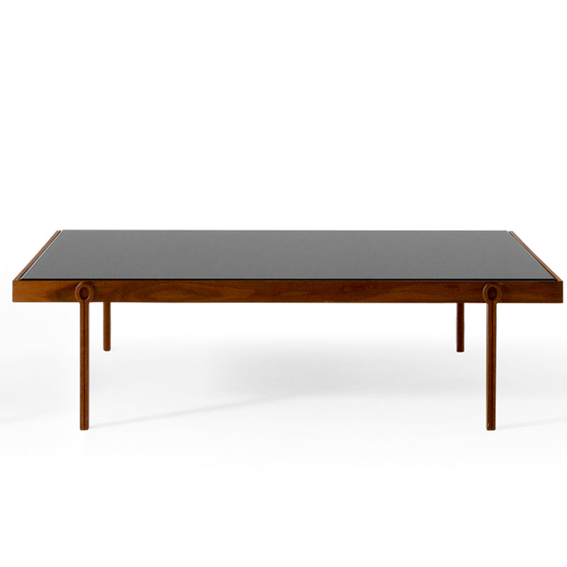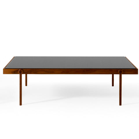 COFFEE TABLE CON ESTRUCTURA EN MADERA NOGAL CANALETTO NATURAL Y TOP EN EXTRA-CLEAR DUSTY GREY GLASS. MEDIDAS: 100 X 100 X 35H