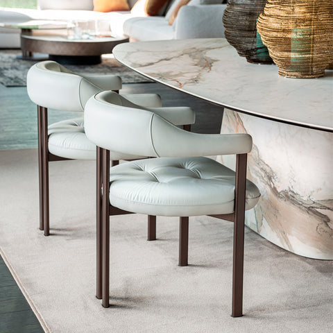 SILLA CON ESTRUCTURA EN ACERO GOFRADO BRONCE GFM18 Y ASIENTO REVESTIDO TELA B730. MEDIDAS: 62 X 62 X 78H