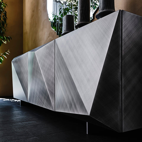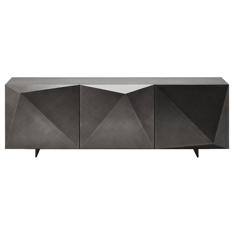 APARADOR CON ESTRUCTURA EN MADERA REVESTIDO EN ACERO BRUSHED GREY. MEDIDAS: 220 X 53 X 83h - A3 (+ 3 CAJONES INTERNOS)