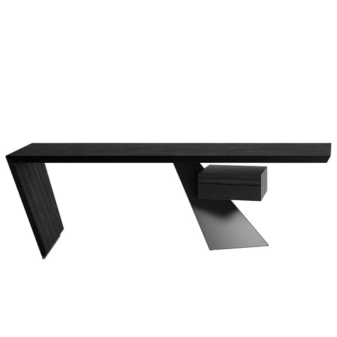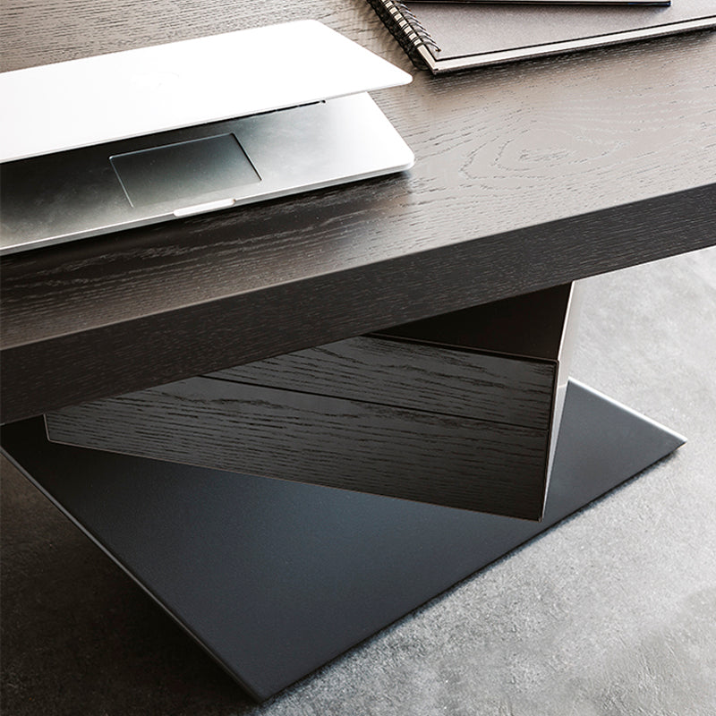 ESCRITORIO CON ESTRUCTURA EN OLM73 OLMO BARNIZADO NEGRO MATE A PORO ABIERTO Y PATA EN GFM69 GOFRADO GRAPHITE + PAD EN CUERO 82 COGNAC. MEDIDAS: 240 X 108 X 75H