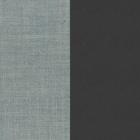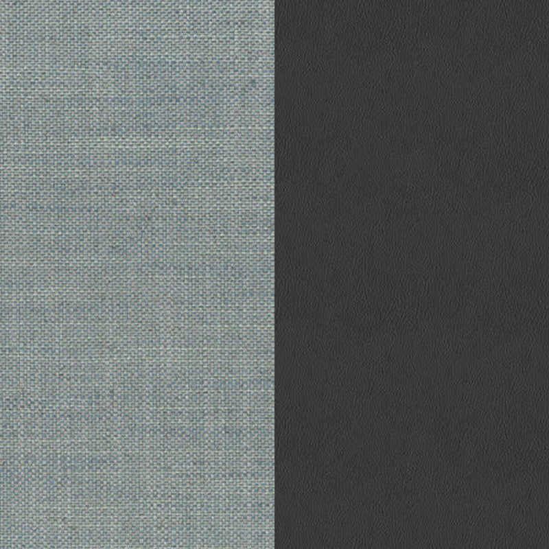 COMPOSICIÓN DE SOFÁ CON ESTRUCTURA EN MADERA 93 FRASSINO GRIGIO ANTRACITE, ACOLCHADO EN POLIURETANO, ASIENTOS REVESTIDOS EN TELA 5413 BARREN AZURRO Y PIEL PELLE SATIN TITANIUM. MEDIDAS: 364 X 104 X 88H