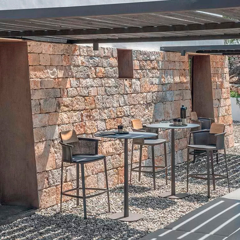 TABURETE CON ESTRUCTURA EN ALUMINIO DARK GREY Y MADERA EN TECA NATURAL. MEDIDAS: 54x46x106H