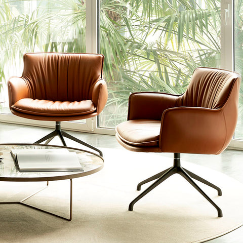 POLTRONA GIRATORIA CON ESTRUCTURA EN ACERO GFM11 GOFRADO TITANIO, CON ASIENTO REVESTIDO PIEL 951 CASTORO. MEDIDAS: 76 X 69 X 72H