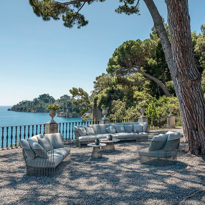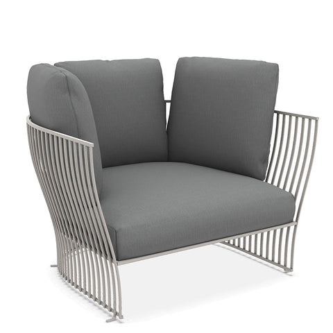 POLTRONA CON ESTRUCTURA EN ALUMINIO COLOR WARM WHITE 430T TEXTURED, COJINES ASIENTO Y RESPALDO EN TELA ACRYLIC A46 LICHEN. INCLUYE FUNDA. MEDIDAS: 110 X 80 X 69H